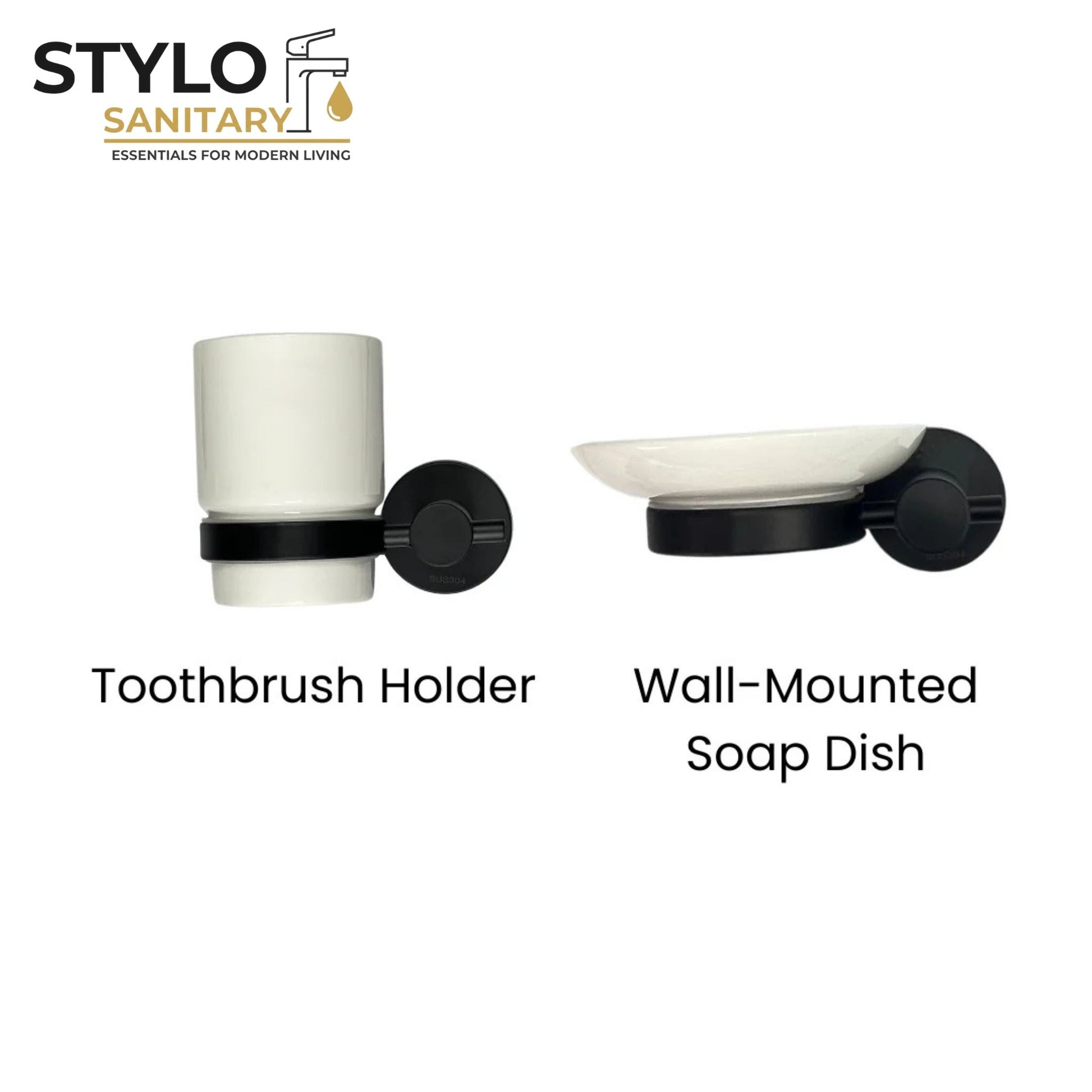 6 piece Bathroom Acessories Set-Stainless Steel-Silver & Black