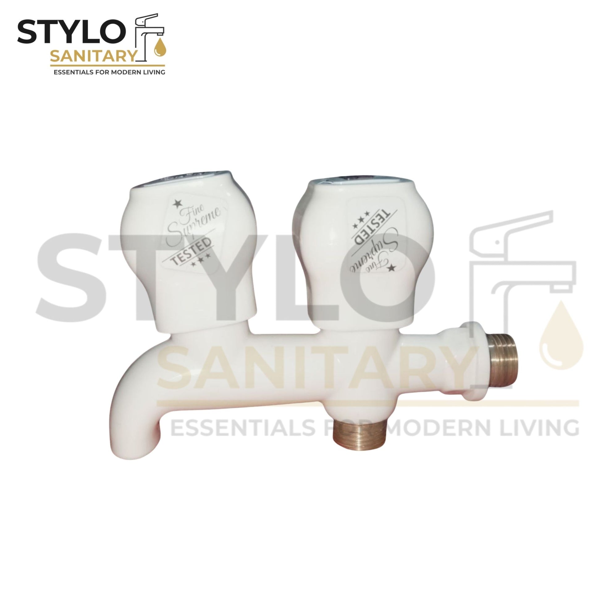 The Double Bibcock features a brass spindle and dual brass bushes, along with inner bushes made from pure polymer, ensuring reliable performance and durability.
